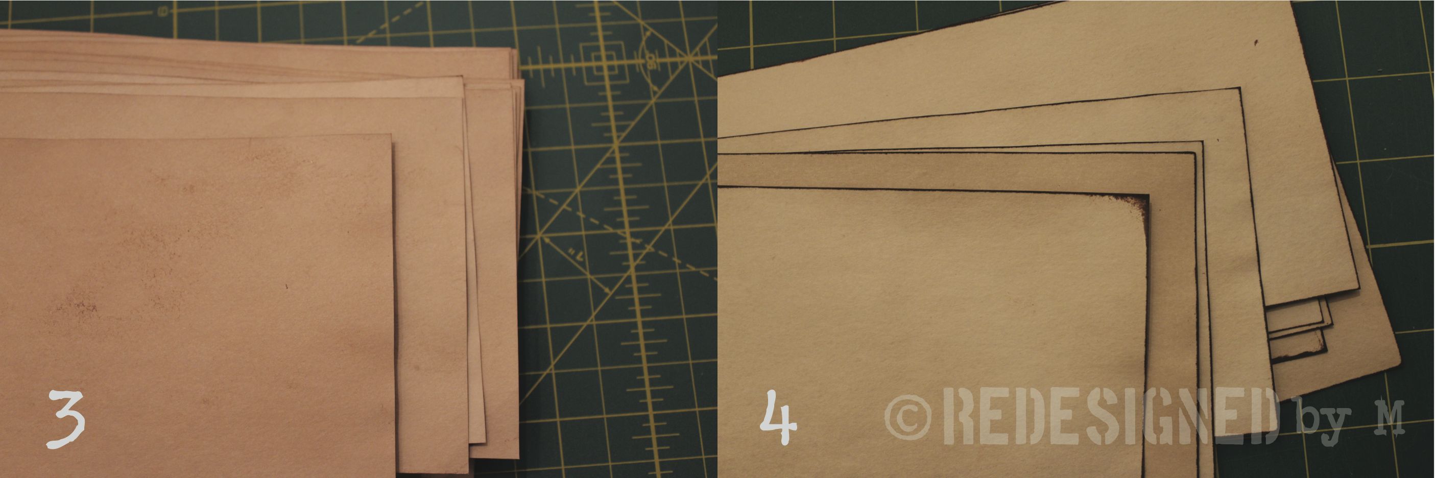 The ticket invitations were designed and printed on card stock, purchased from Wal-Mart for the beautiful amount of $5.86! But the white paper didn’t look very vintage-y so I took the next step to antique them. (Yes, we could’ve bought paper that already looked antiqued, but would it have been as thick as this card stock or be as cheap or as easy to find?)